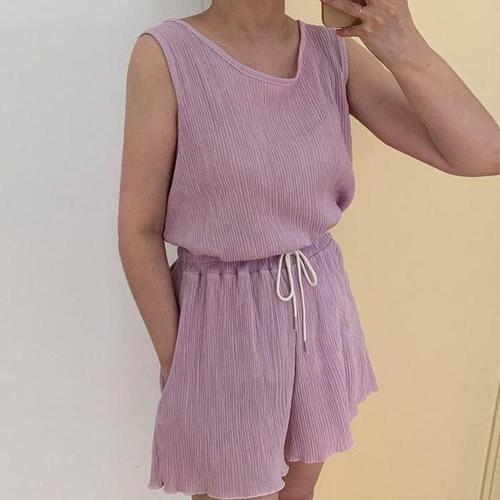 [옷자락] 여성 셔링 어깨트임 나시 블라우스와 반바지 세트