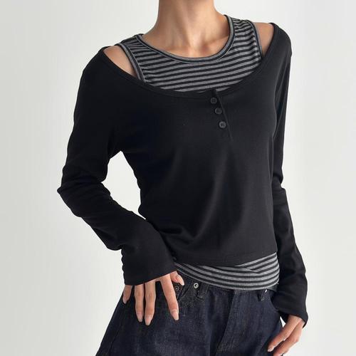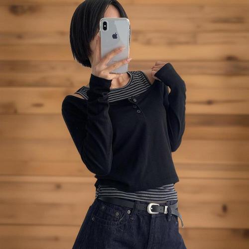 [잇수다] 젠카니 브이넥 카라 긴팔 티셔츠 + 뷔스티에 나시 세트