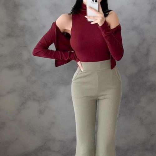[신상오픈런]여성 리본 홀터넥 셔링 나시와 긴팔 티셔츠 세트