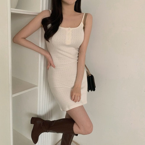 플러리싱 / 슬림핏 펀칭 골지 단추 나시 미니 원피스 플러리싱