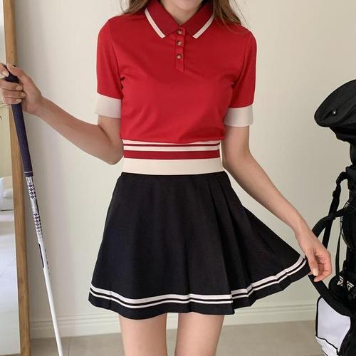 여자 골프 테니스웨어 배색 카라 티셔츠