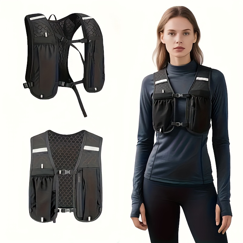 TEMU 남성 & 여성용 러닝 백팩 조끼 - 수분 공급 시스템 호환 가능, 조절 가능한 물통, 패딩 백 패널, 트레킹 하이킹 마라톤 팩 (블래더 미포함) - 야외 스포츠용 경량 - 블랙