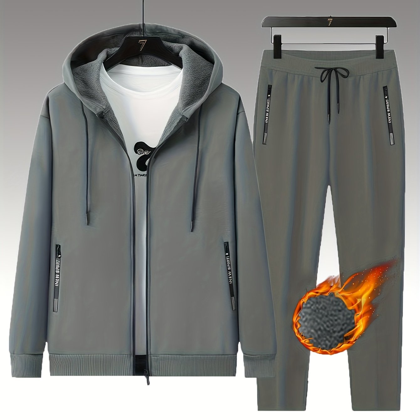 TEMU 남성 캐주얼 스포티 후드 스웨트셔츠 & 조거 세트, 긴소매, 지퍼업, 드로스트링 허리, 포켓, 레귤러 핏, 겨울옷, 캐주얼 스포츠웨어|후드 스웨트셔츠|지퍼업 후드티, 스웨터 후드티