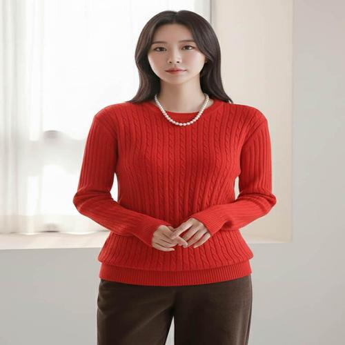 여성 니트 베로니카 라운드 꽈배기 캐시 니트