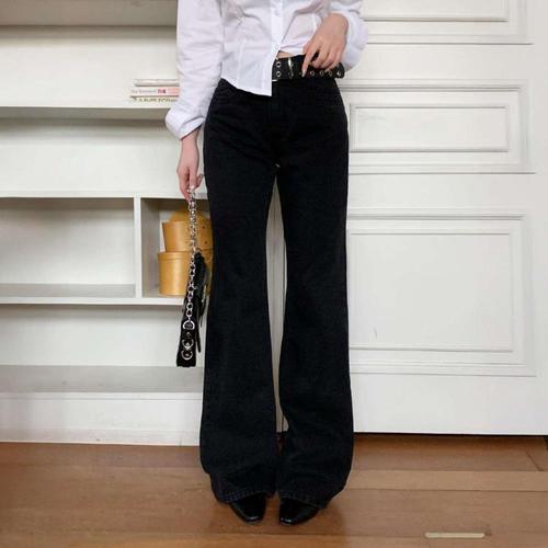 [다잇템]여자 검정 하이웨스트 넓은 나팔 진 팬츠