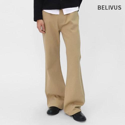 [빌리버스]빌리버스 남성 플레어 팬츠 베이지 와이드 팬츠 부츠컷 면 세미 베기핏 나팔바지 BWYP005
