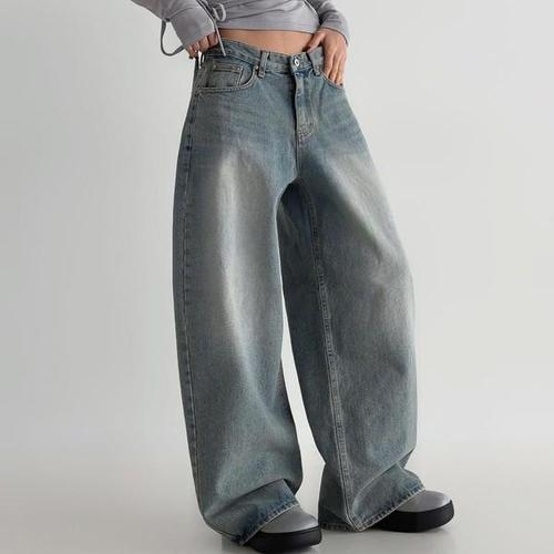 [신상오픈런]벌룬데님팬츠 커브드 워싱진 빈티지 와이드 청바지