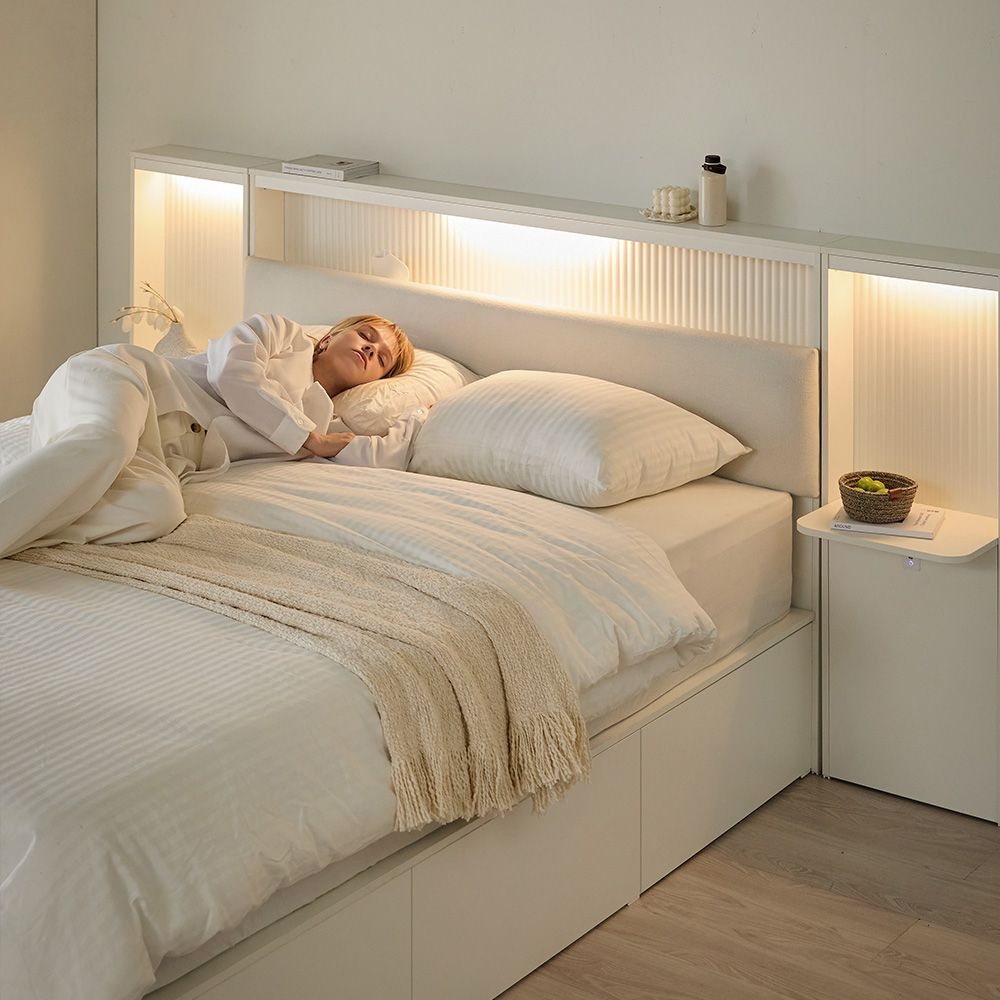 방수커버 증정이벤트 /E0등급 플레시아 패브릭 LED 3단 빅서랍 수납침대 프레임 SS/Q