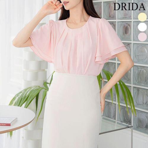 [드리다]여자 여름 프릴 핀턱 빅사이즈 날개 반팔 쉬폰 블라우스 40-50대 미시 중년여성 엄마옷 하객 출..