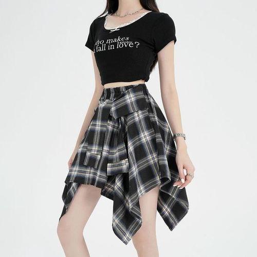 [에어플레인][A.I.P] 착시 체크셔츠 언발 미니스커트
