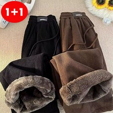 AOUGK 1+1 남자 코르덴 기모 바지 골덴 와이드 팬츠 빅사이즈 배기바지 겨울 밴딩 바지 L~5XL
