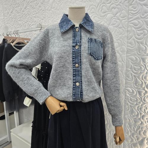 [샤틴]데님 배색 카라넥 니트가디건 (S254K980)DG