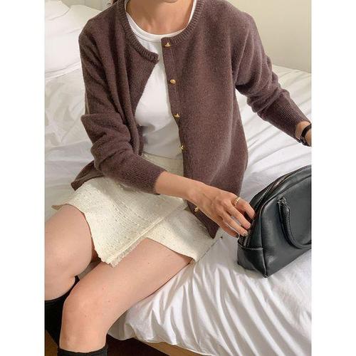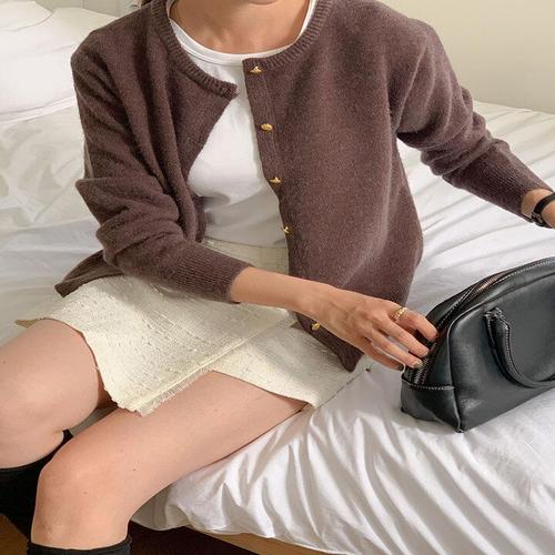 [하젤]라포라 라운드넥 골든 니트가디건_F4246