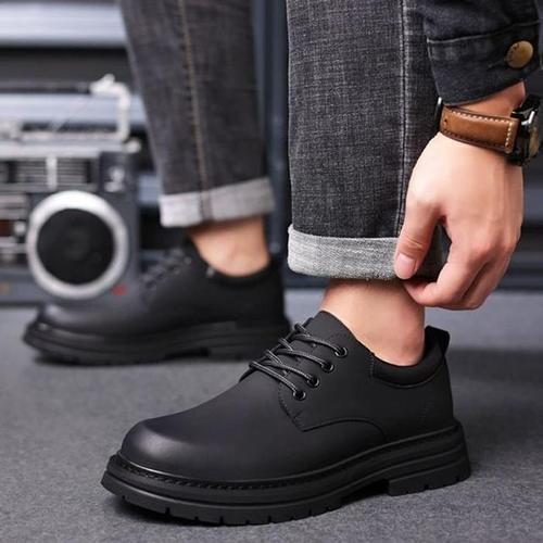 XVWO 남성 고급감 데일리 캐주얼 가죽 느낌 패널 스니커즈 영국풍 빈티지 남자 정장 구두 작업화