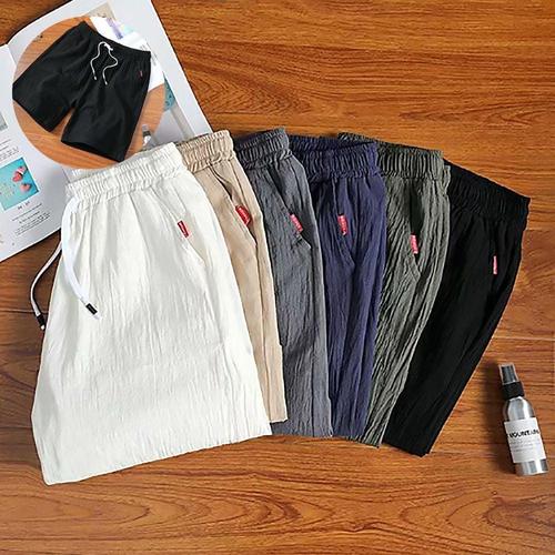 [리빌모아]남자 여름 린넨 마 밴딩 5부 심플 무지 반바지 OC-PTH-SWFHZ1OG