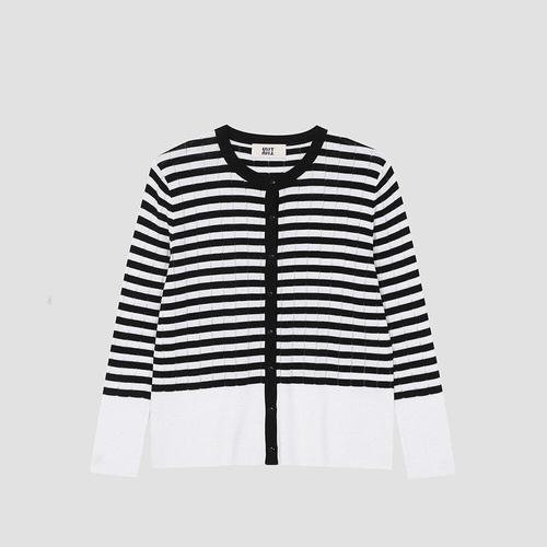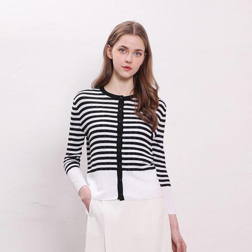 [유닛]코튼 블렌드 크루넥 스트라이프 니트 가디건 [UFJKCA25GN-WHITE]