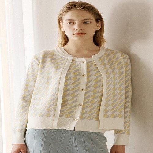 [유닛]코튼 혼방 크루넥 자카드 니트 가디건 [UFI1-KCA153N]