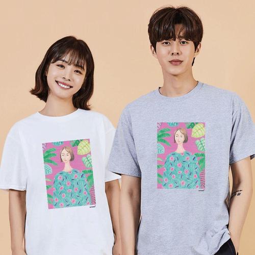 키밍 단발 자화상 핑크 베이직반팔티 남자면티 W69FC96