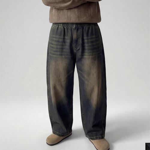 남성용 데님 와이드핏 숏팬츠 밴딩 와이드 반바지 (WFK6E8X)