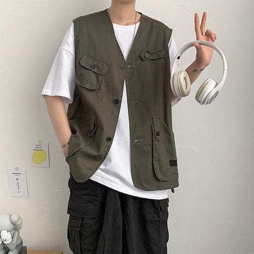 [에이치플러스몰]간절기 캐주얼 봄여름 조끼 패션 코튼 남성 오버핏