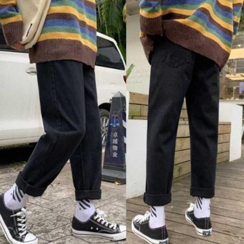 델루비오 남성 10대 청소년 와이드 데님 팬츠 학생 밴딩 청바지 스트릿 바지, 2종세트
