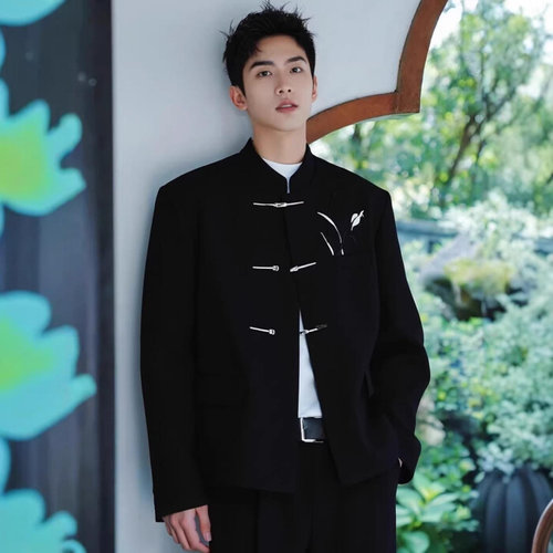 제로투올샵2 / 남성 봄가을 블랙 스탠드카라 중식 스타일 자켓 블랙 s