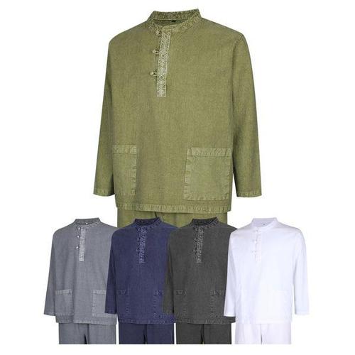 [파파브로]남성 간절기 천연 워싱 라운드넥 생활한복 상하의 세트 SS-HBA-Q006