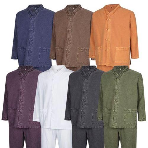 남성 가을 천연염색 트임 생활한복 상하의 세트 SS-HBA-Q017-브라운
