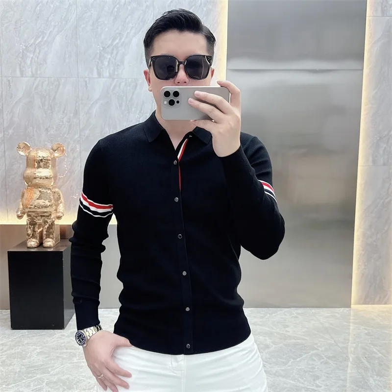 남성용 패셔너블 니트 긴팔 스트라이프 폴로넥 스웨터 슬림핏 다용도 가을 겨울 스트리트웨어 트렌디 스타일