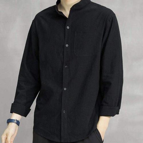 남성용 린넨 차이나카라 긴팔 셔츠 여름 쾌적한 통기성 셔츠 WFLLYNH