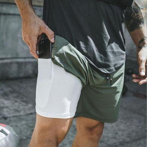 [셀러허브_여성트랜드패션]레이어드 허리밴딩 헬스바지 두겹 스포츠 반바지 남성