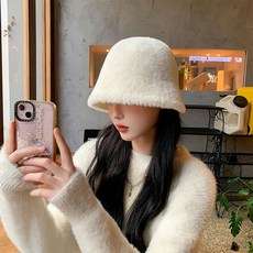 머스트킵 소프트 앙고라 퍼 버킷햇 사이즈 조절 가능