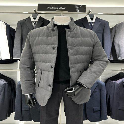 [트루젠]비건 스웨이드 구스패딩 그레이 비지니스 다운 점퍼 자켓
