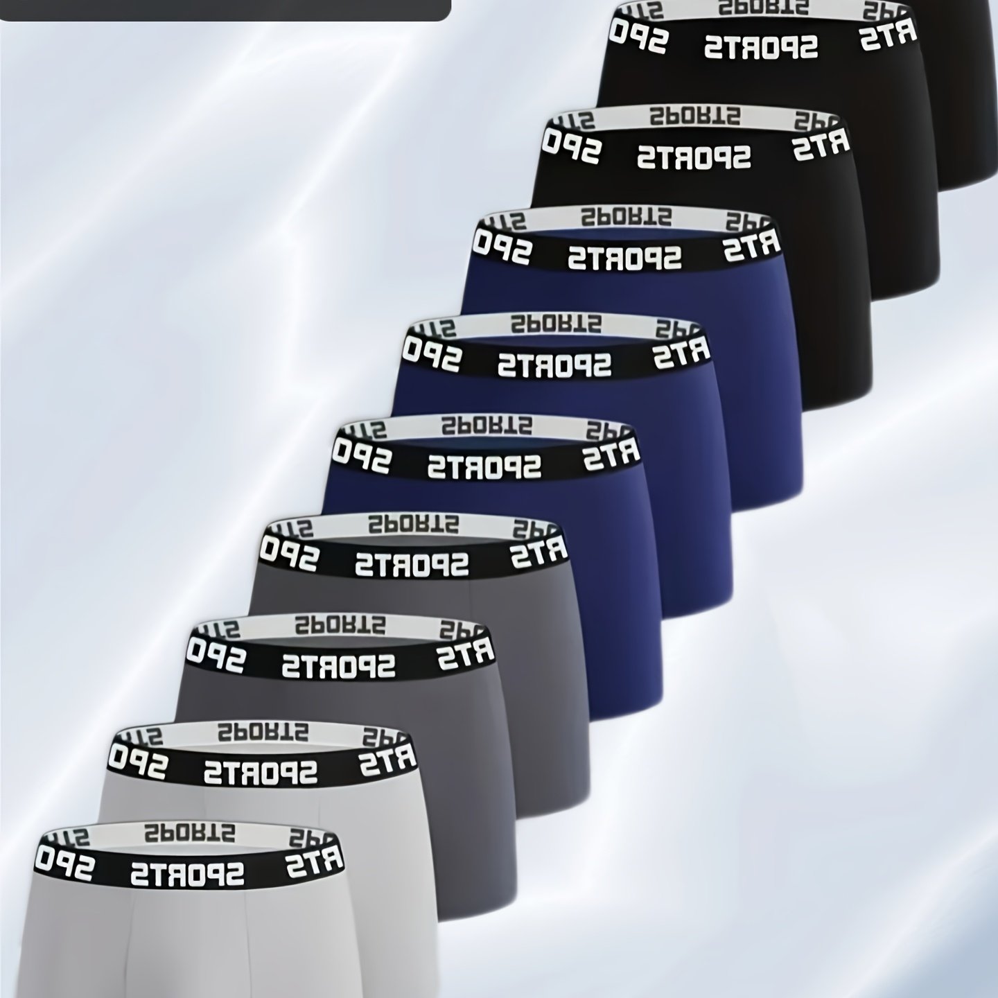 TEMU 1-3-5-8-10개 세트 남성용 캐주얼 플랫 박서 브리프 - 단색 조합, 레터 벨트, 편안하고 통기성 좋은 스포츠 속옷