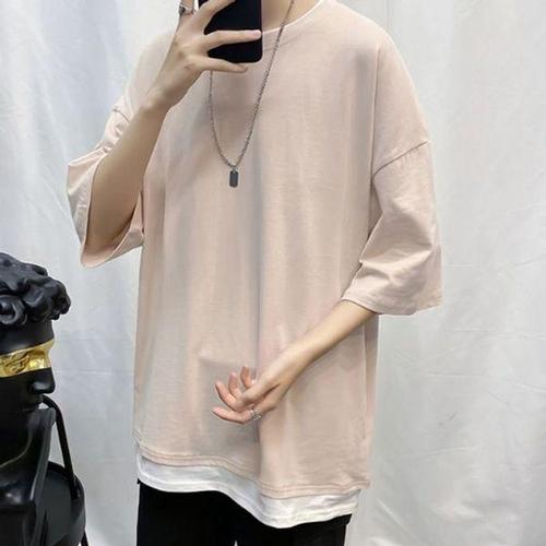 [에이치플러스몰]남자 무지 반팔 라운드티 셔츠 오버핏 티셔츠 박스티 남자반팔티셔츠
