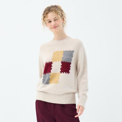 [유닛]라쿤 블렌드 퍼즐 모티브 크루넥 벨리스 풀오버 (UFKKCN41FN-L/BEIGE)