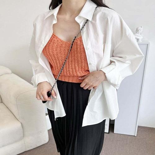 더핑크 / 지딘 슬림핏 레이어드 버튼 나시 + 버튼 긴팔티 set