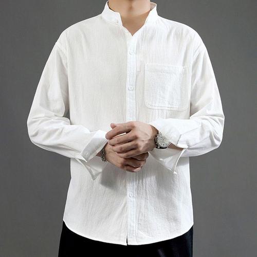 [에이치플러스몰]남성 차이나 셔츠 긴팔 여름 흰색 차이나넥 린넨셔츠