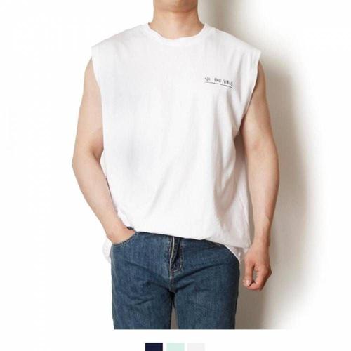 위베이지크 시원한 남자 여름 민소매 나시티 면티 티셔츠 오버핏