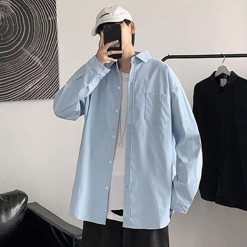 남자숙 봄 가을 오버핏 정장 긴팔 숙 남방 시크릿버튼 WFL0DKF