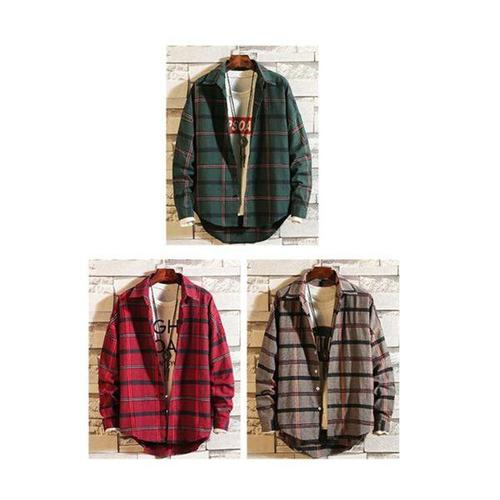 남성 체크남방 긴팔 오버핏 셔츠 봄 가을 겨울 기모 두꺼운 체크셔츠 구김없는 남자 남방 빅사이즈 95~130