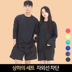 라틱 남자 여자 래쉬가드 상하의 세트 수영복 루즈핏 비치웨어, 블랙