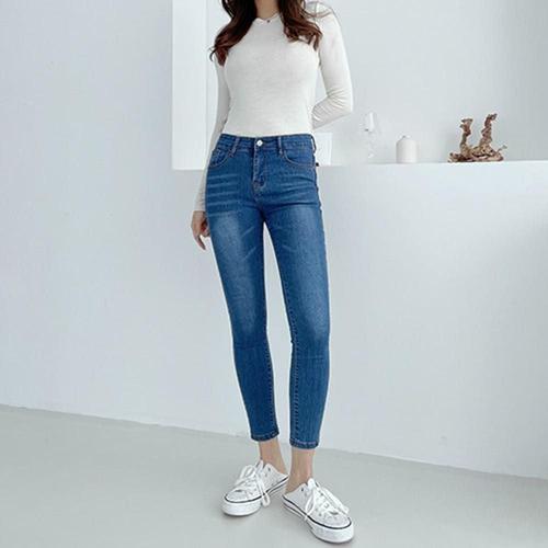 [에이치플러스몰]워싱 하이웨스트바지 스키니 일자청바지 데님바지 1P