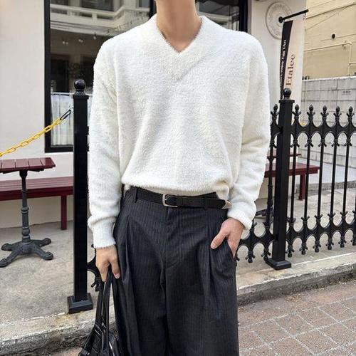 남자 앙고라 브이넥 모헤어 니트티 남성 스웨터