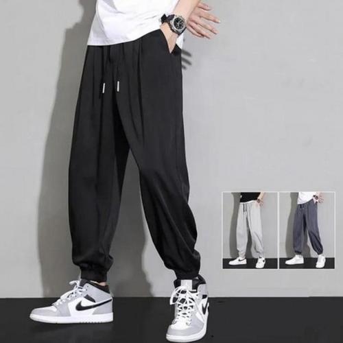 HANYO 여름용 루즈핏 스트레이트 냉감 아이스 실크 캐주얼 팬츠