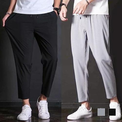 남성 쿨링 팬츠 슬림핏 캐주얼 밴딩 남성 일자 바지 스판 여름 트레이닝 헬스 바지 긴바지 쿨링