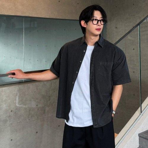 [피팅남]남자 틀브 오버핏 여름 피그먼트 면 반팔 셔츠 남방