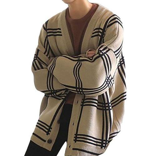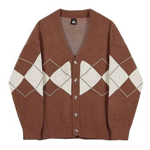 [에이치플러스몰]남성가디건 아가일 패턴 브이넥 니트 루즈핏 간절기