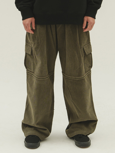[카멜워크] 와이드 코듀로이 컷팅 카고 팬츠(그린)