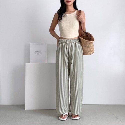 고품질 줄무늬 와이드 캐시스 스트라이프 지지미 와이드바지 (WFK7H3N)